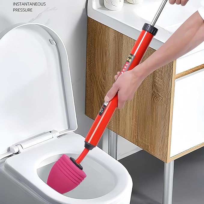 The compressed air pressure of a toilet plunger heavy duty can reach a max of 120psi, helping to blast away the blockage in just seconds. More easily and effectively than a toilet auger.(Make sure the movement of inflate be quick and continuous)